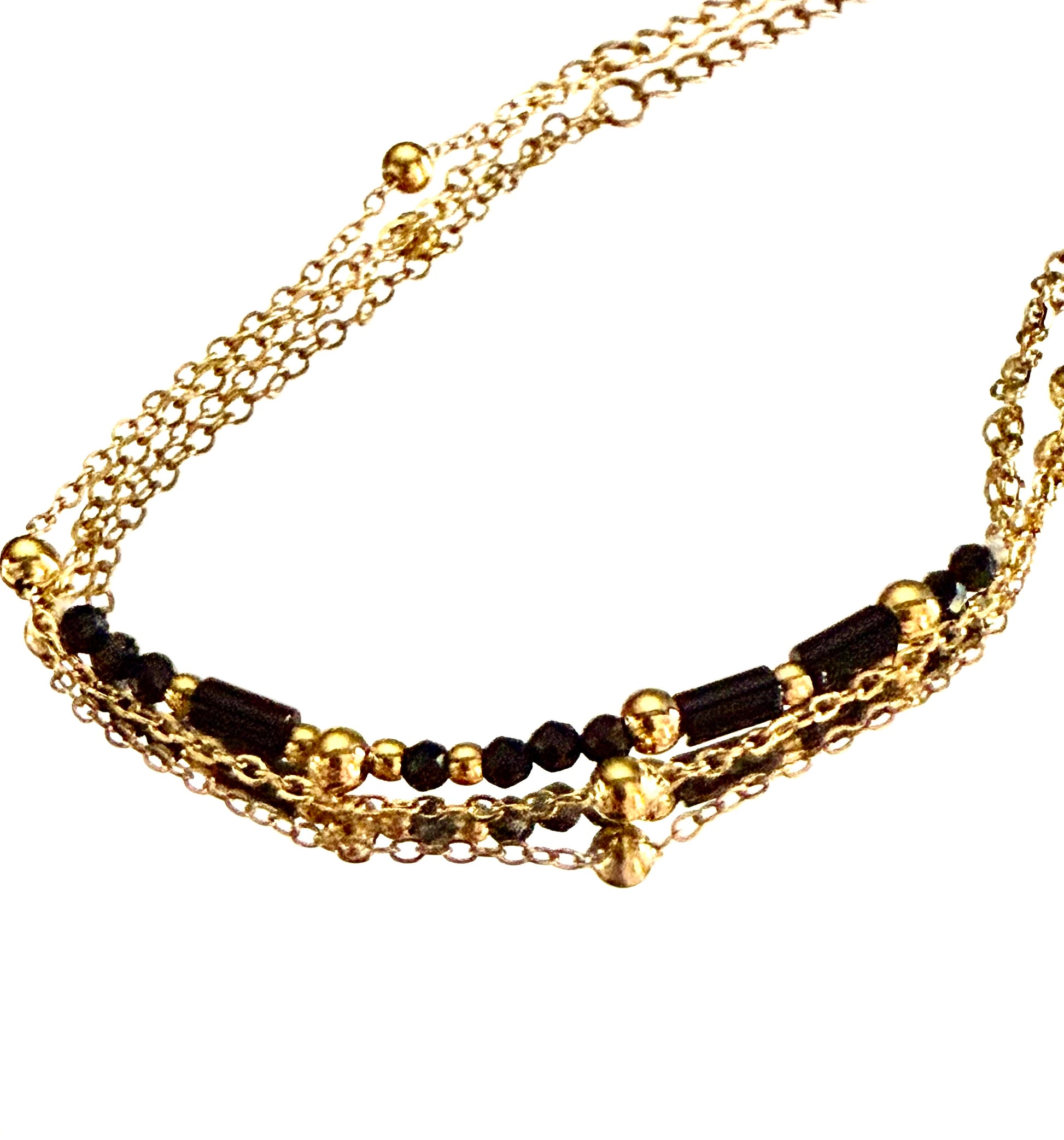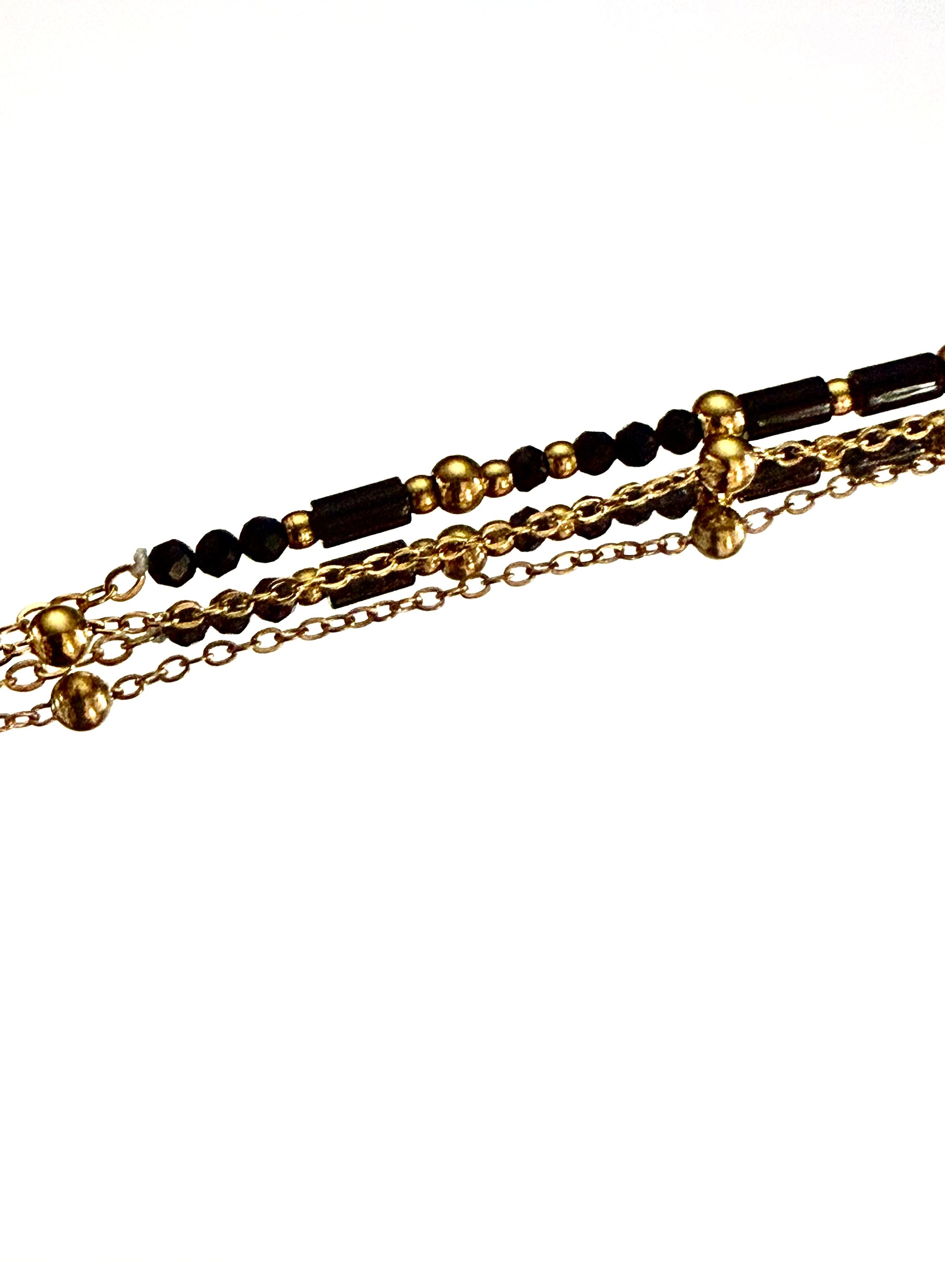 Pulsera en acero inoxidable dorada doble cadena con perlitas negras