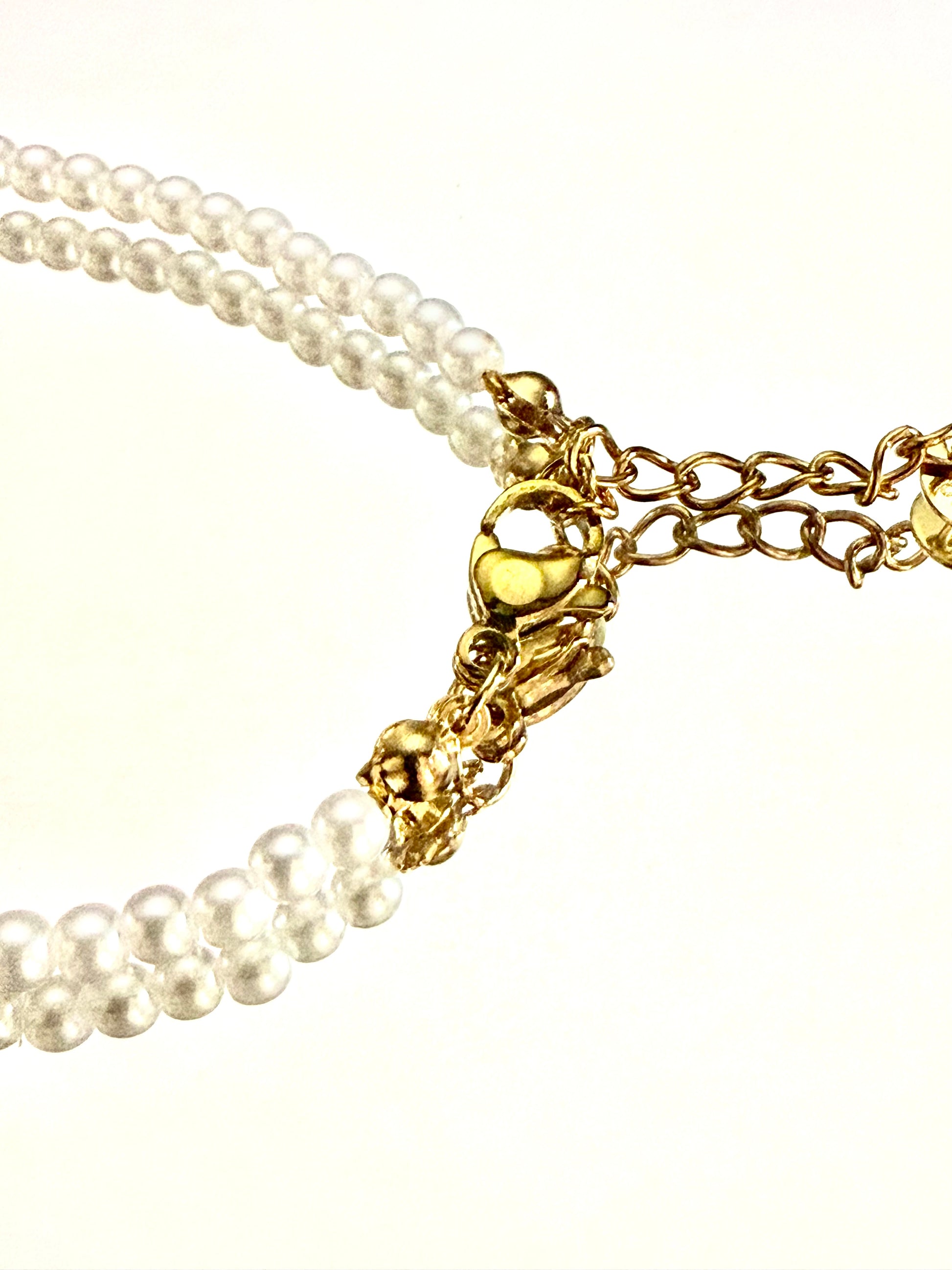 Pulsera en acero inoxidable dorada con perlitas blanca