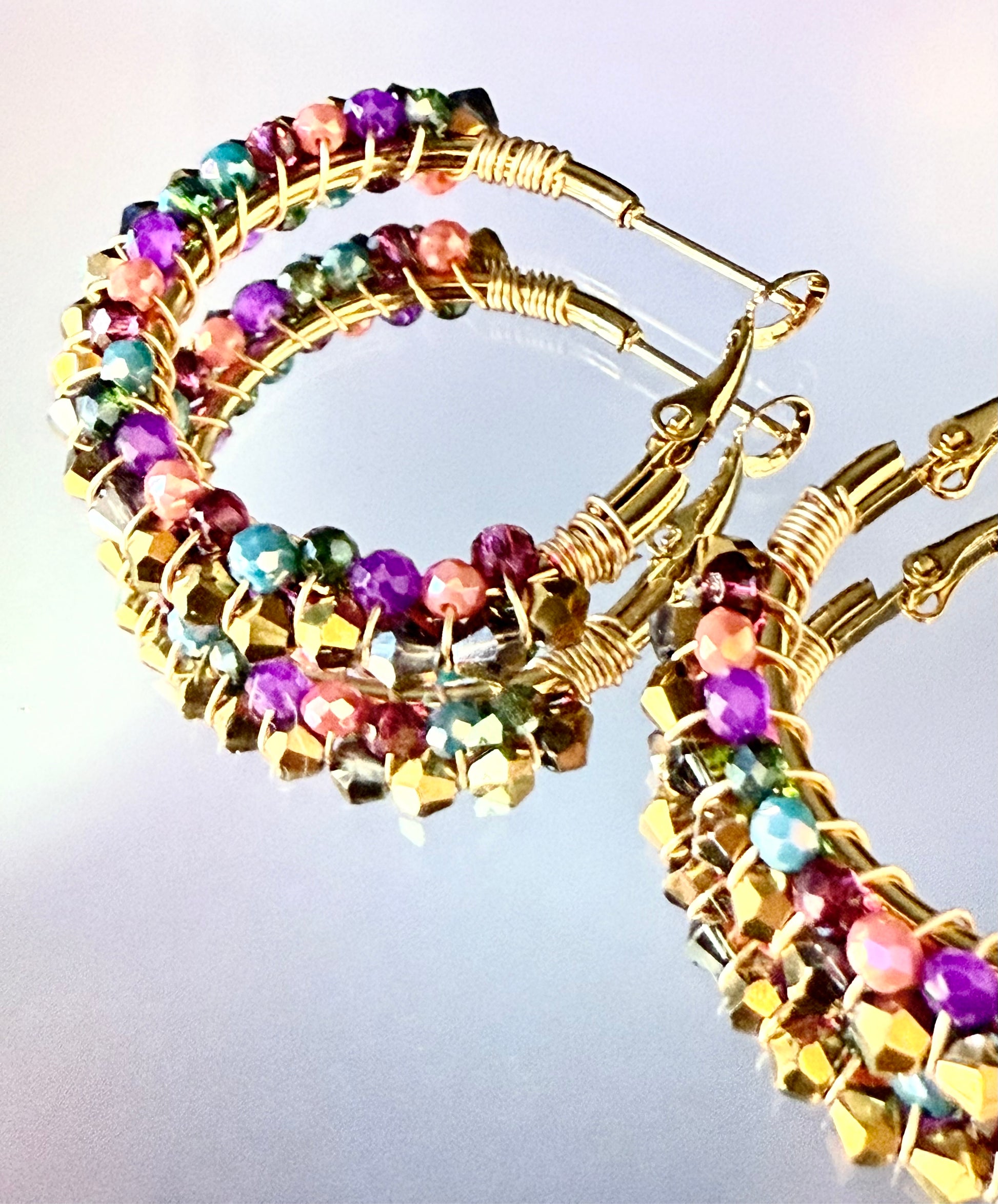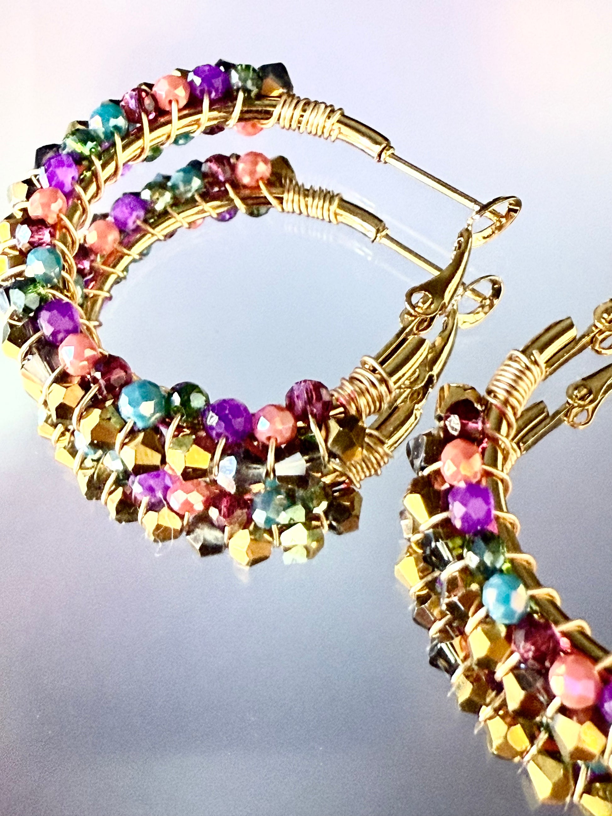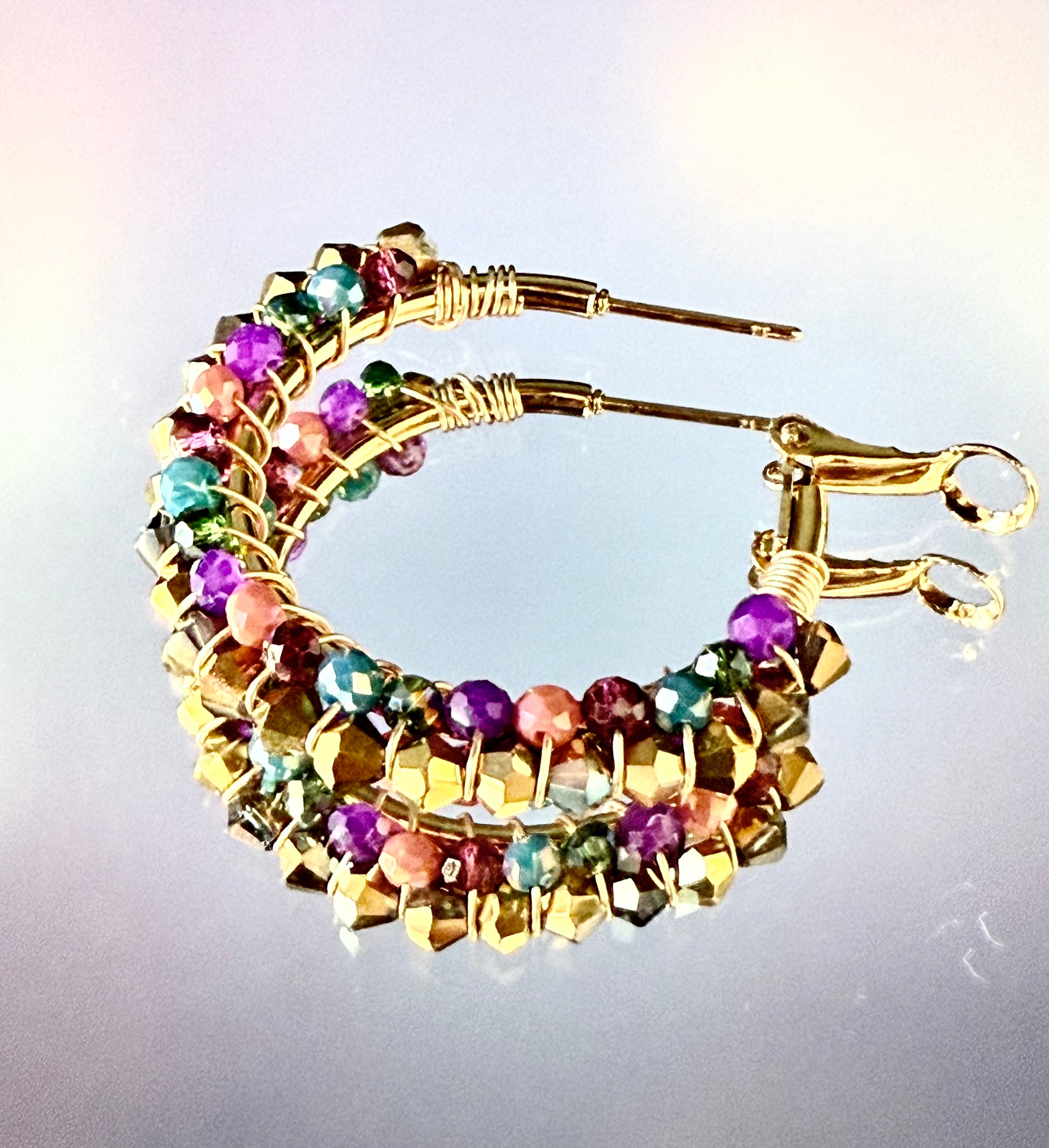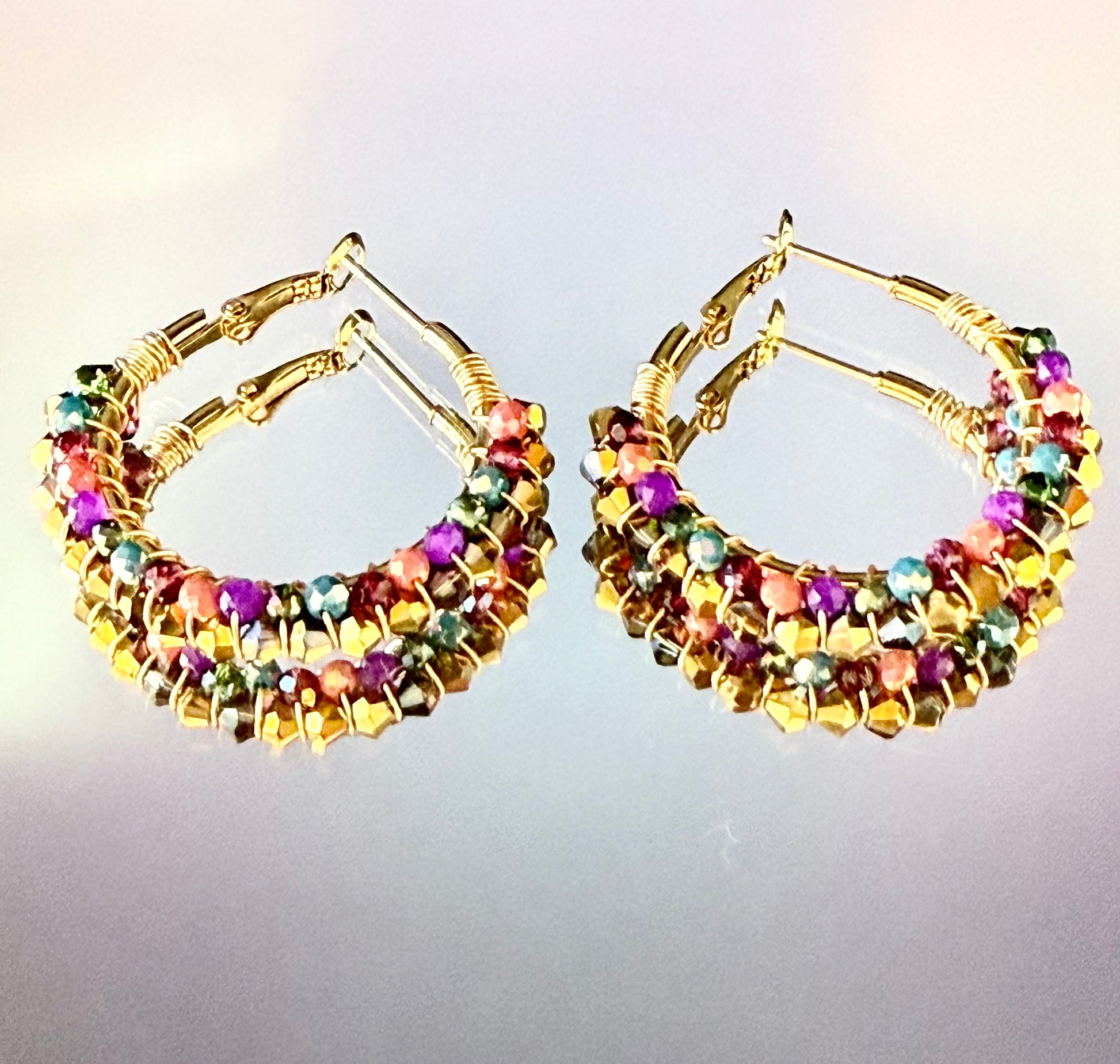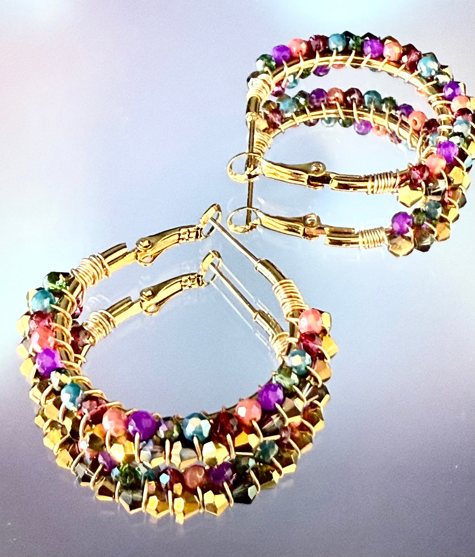 Pendientes en acero inoxidable dorado con permitas de color