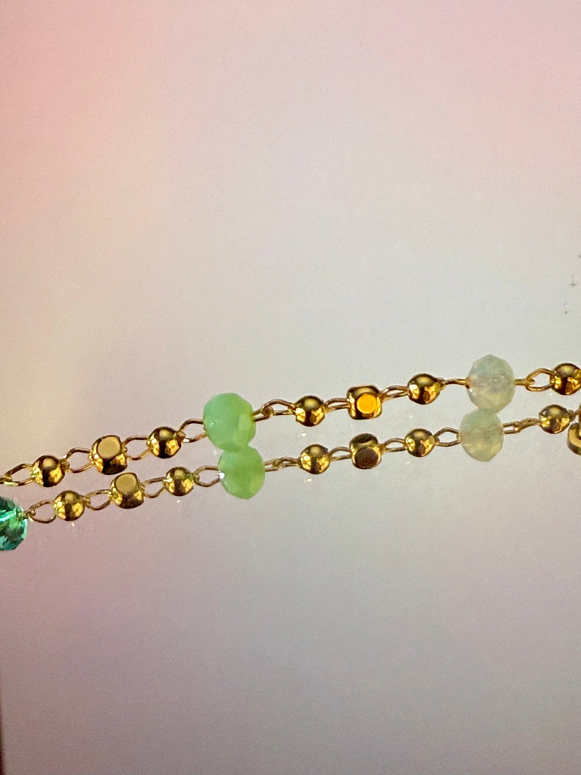 Pulsera en acero inoxidable con perlitas verdes y doradas